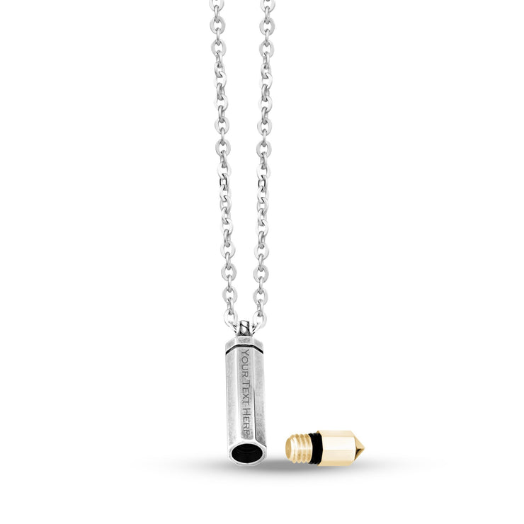 Now you can cherish your loved ones while still being fashionable and discreet. Nobody needs to know that you have your loved ones ashes around your neck and now they wont. Made out of antiqued stainless steel this bullet carries a small amount of ashes inside and opens by twisting the bottom part.