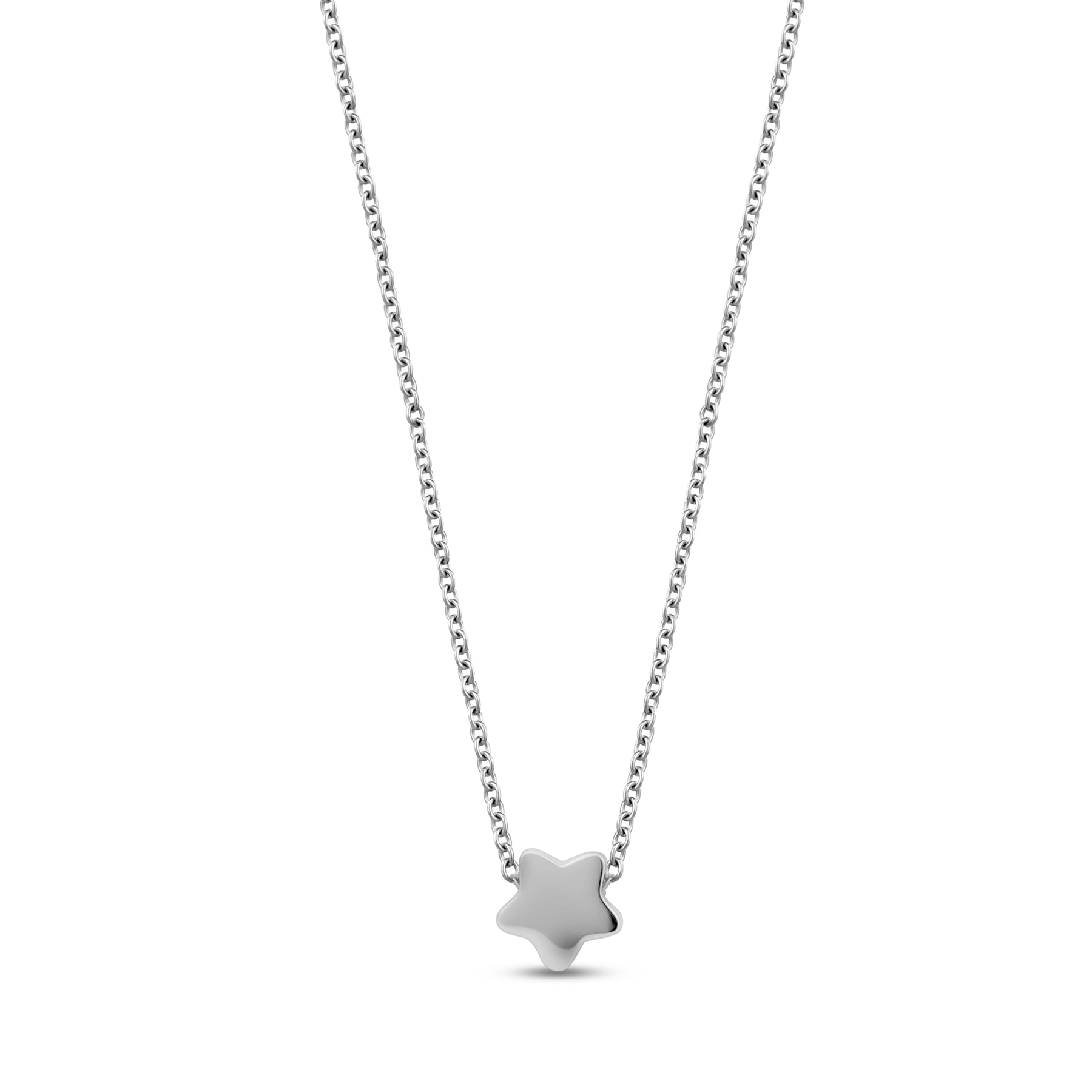 This stainless steel mini star pendant is perfect for those looking for minimal jewelry. Measuring 6mm (0.24") wide and 3mm (0.12") thick, the pendant comes with a 16 inch + 2" extension chain of 1mm thickness. With the option to engrave an initial on each side, this petite pendant is great for layering and makes for a thoughtful gift.