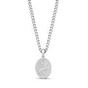 Don't leave your fashion up to fate! Instead, embrace the stars for your style with this oval zodiac pendant on a cuban link stainless steel chain. The simple chain is made to be durable, and it provides the perfect backdrop for the more intricate pendant. This oval pendant has a raised image of each zodiac sign. Choose from cancer's crab or the fish for pisces. Align your necklace with your zodiac sign for a constant reminder of how your stars could align today.