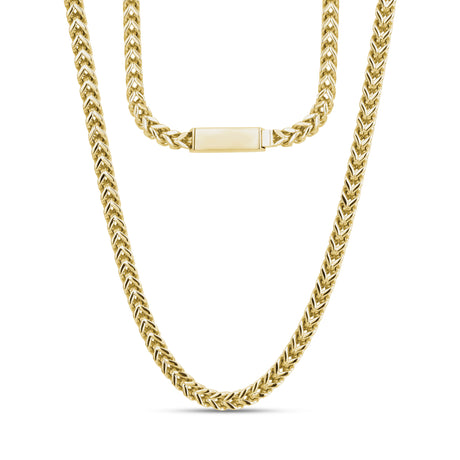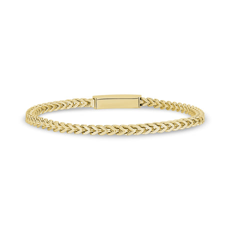 Sleek, strong, and made to shine. This stainless steel Franco chain bracelet features a polished gold finish and tight, squared links for a bold yet refined look. Perfect for everyday wear or stacking with your favorite pieces.