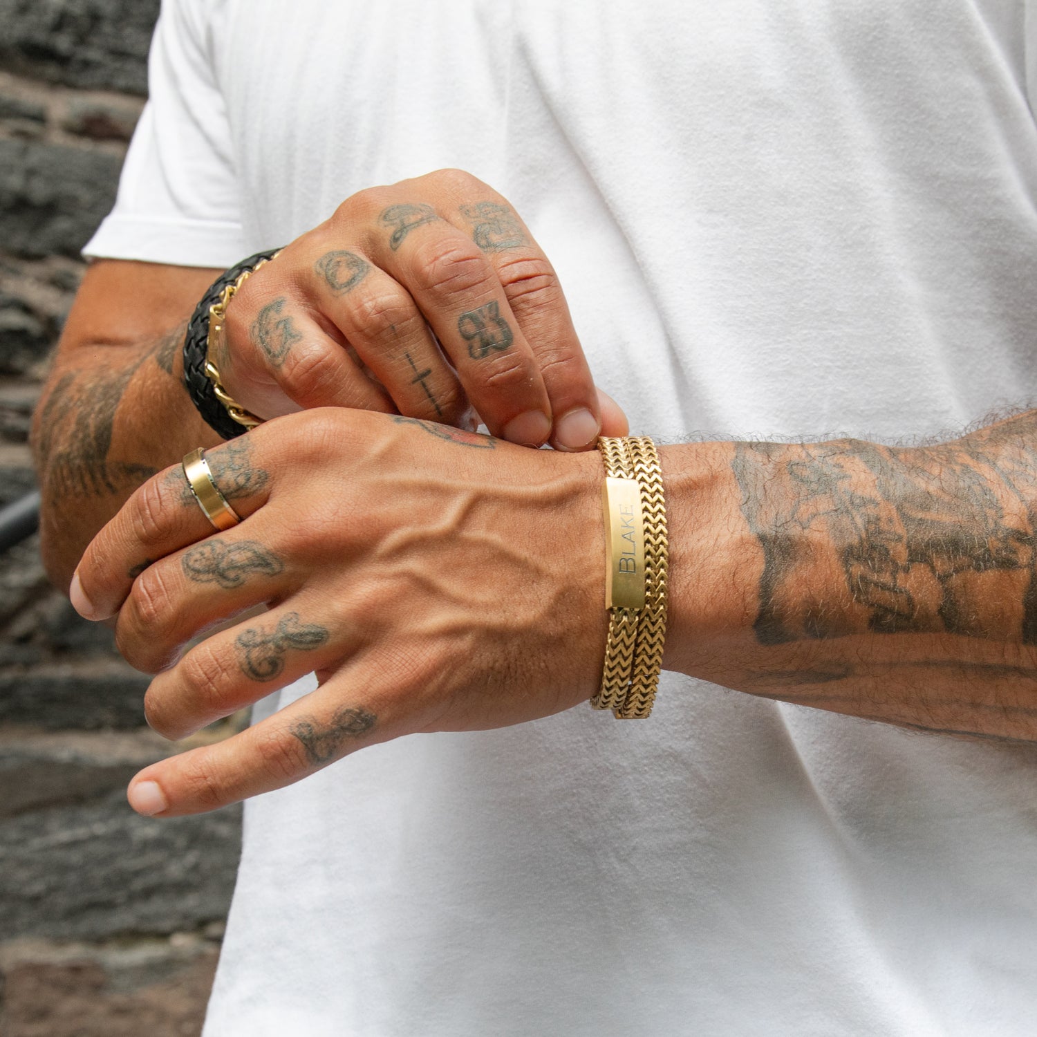 This stainless steel ID bracelet can only be described in one word, and that word is badass! This matte double franco link steel ID bracelet will make people stop you in the streets and ask you where did you get this bracelet, so make sure you know the answer to that question. Personalize this ID bracelet with the engraving of your choice.