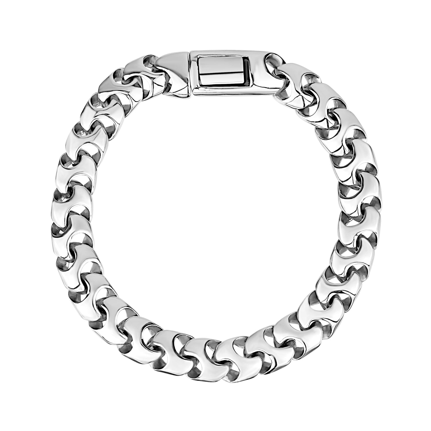 Unleash a wave of sophistication with the Contemporary Link Bracelet. Crafted from high-quality stainless steel, this bracelet features robust 9mm (0.35") links that exude a commanding presence around your wrist. The unique click-in button clasp ensures your bracelet remains securely fastened, combining ease of use with a seamless look. Its polished finish and sturdy design make it both an eye-catching and durable choice for everyday wear. Perfect for those who appreciate a blend of modern design and classic style.