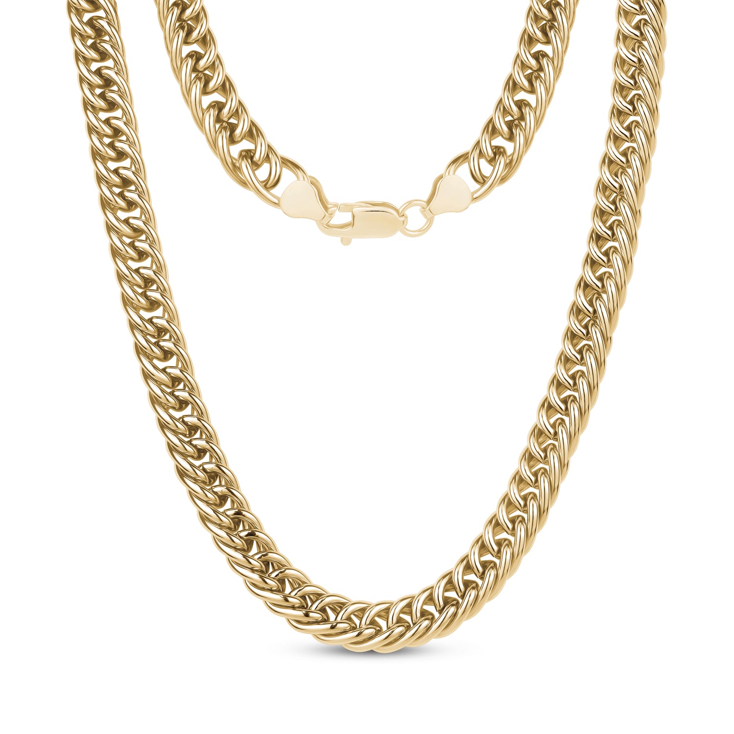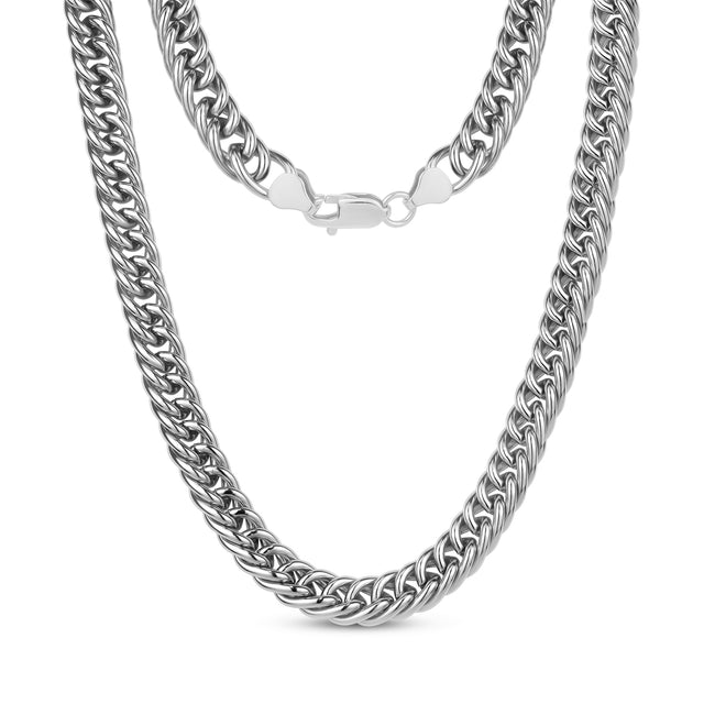 This stainless steel double curb link necklace is perfect for elevating your accessory game. With 9mm (0.35") links, it offers a bold yet elegant look, ideal for women who appreciate a statement piece that's both stylish and versatile. Whether worn alone or layered with other necklaces, this piece adds a touch of sophistication to any outfit.