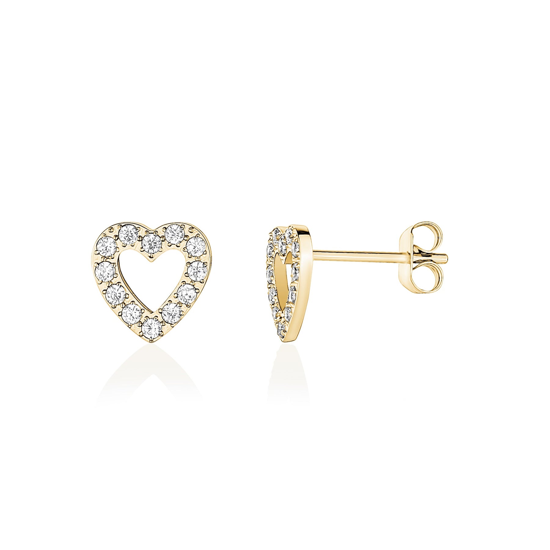 Beautiful and elegant stainless steel heart shape stud earrings for woman. These earrings contain high quality cubic zirconia stones all around.