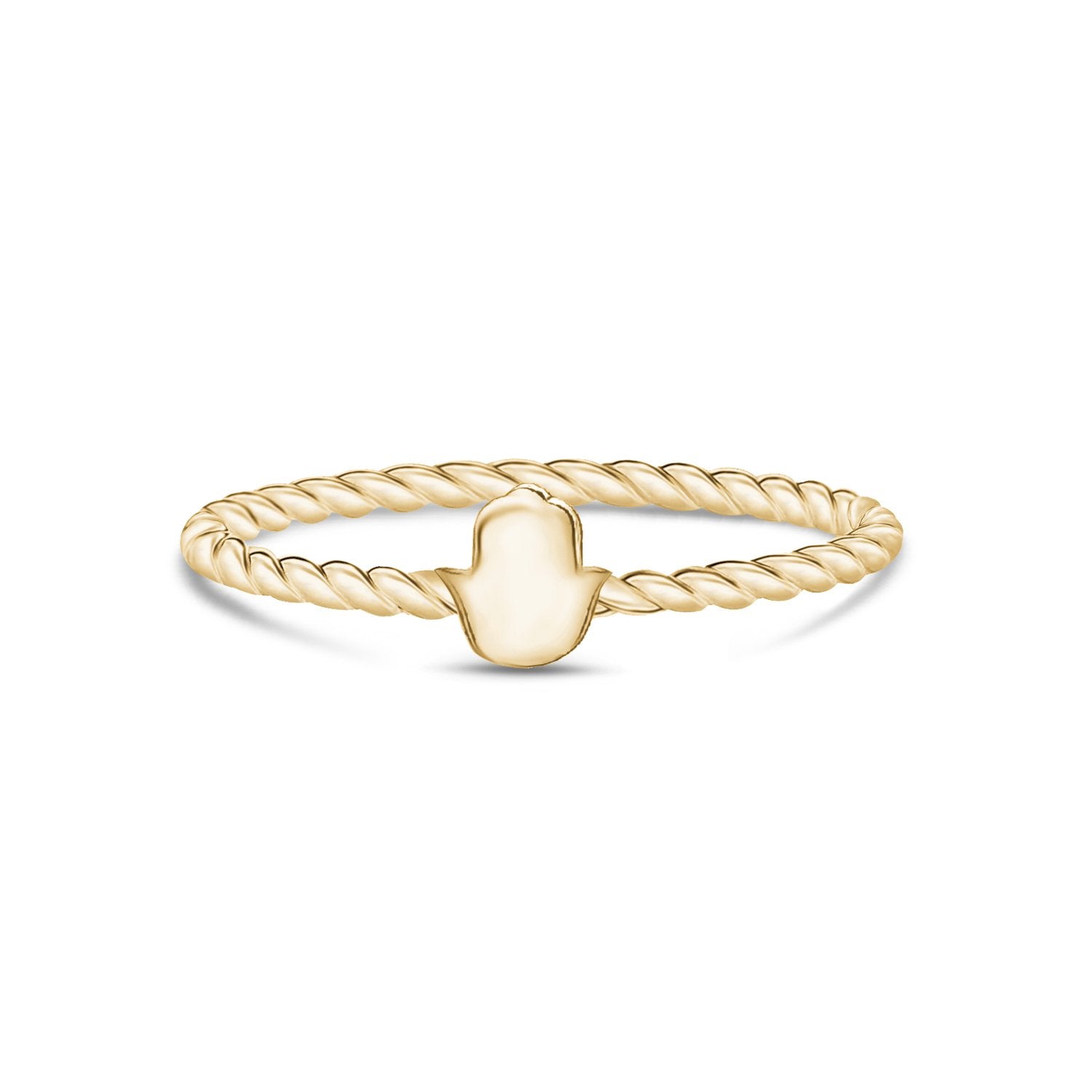 A hamsa ring can be a great addition to your jewelry collection. This particular piece takes the iconic symbol and incorporates it into a dainty twisted band. The minimalist design has strength with the stainless steel construction. This is a ring that is made to be personalized. The hamsa ring can be engraved with a letter of your choice. You can also turn this minimalist ring into a stackable masterpiece. Because it is stackable, this ring can be paired with other rings. The end result is fully personalized.
