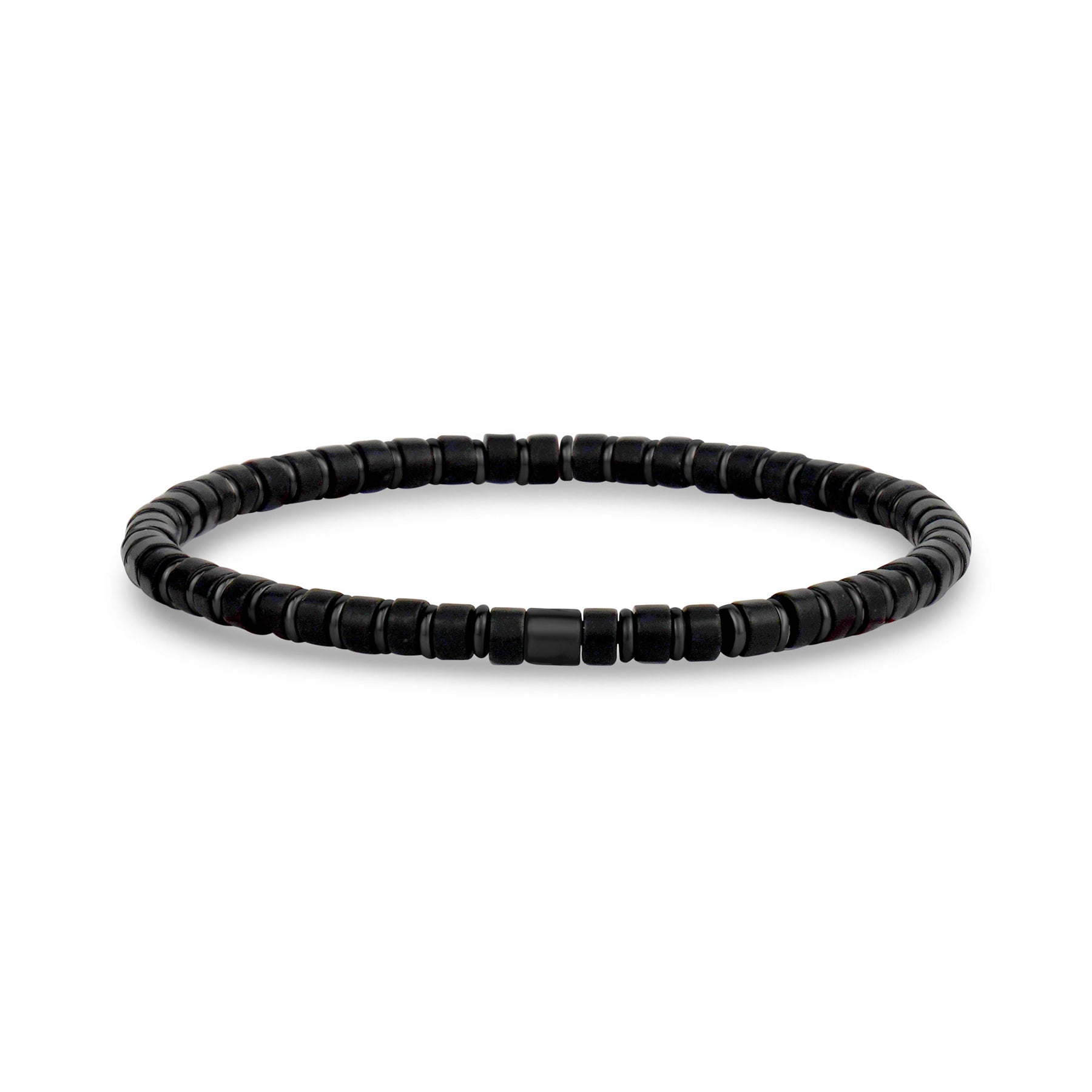 This sleek black and hematite bead bracelet is composed of matte black onyx beads and hematite discs. Its 4mm (0.16") beads and stretchable stainless steel closure provide easy wearing and a comfortable fit. Ideal for stacking and layering with other bracelets, it adds effortless style to any ensemble.