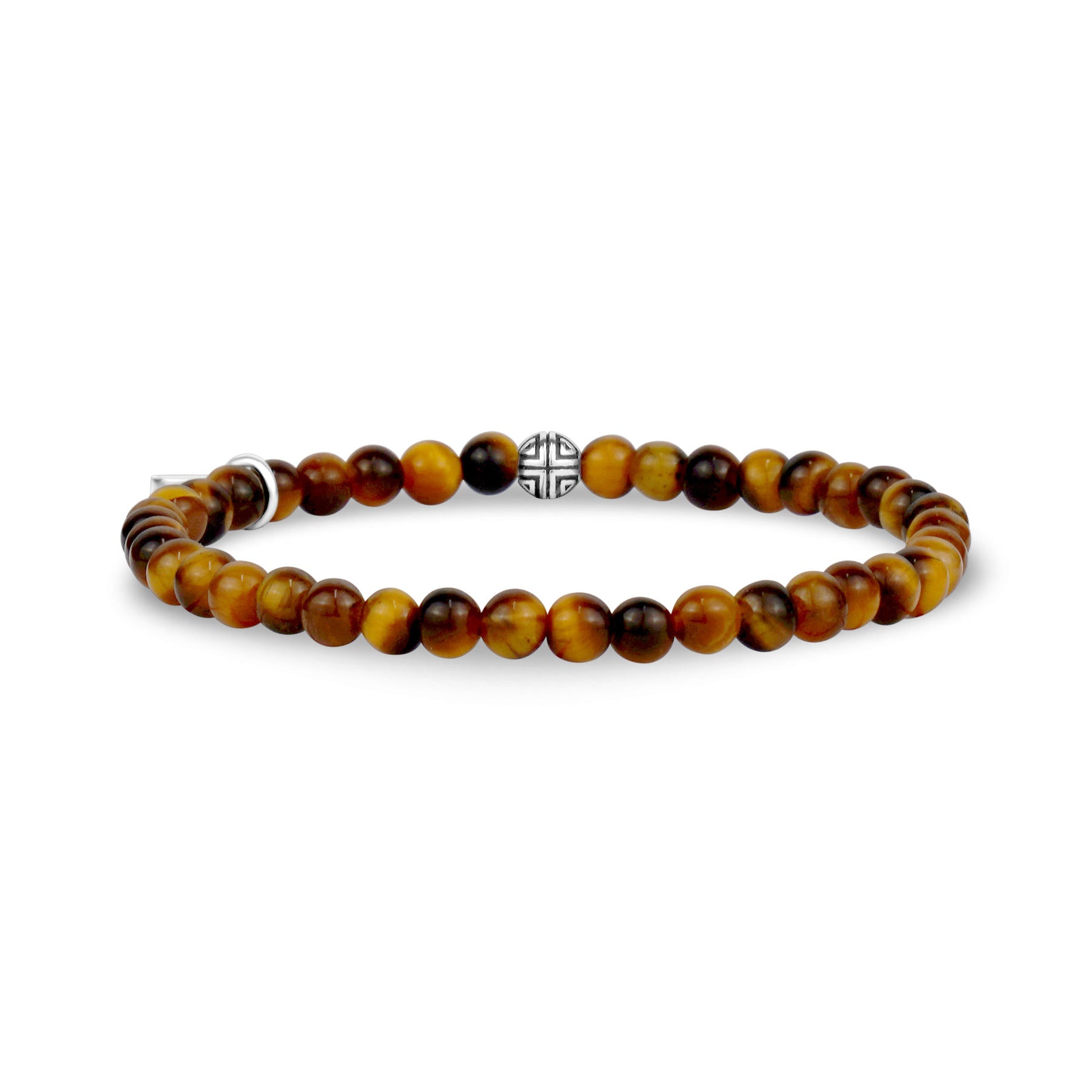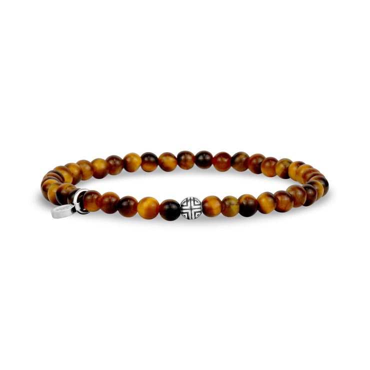 This sleek bracelet features 4mm (0.16") semi-precious Tiger Eye beads, celebrated for their grounding and confidence-boosting energy. Paired with a signature stainless steel bead, it offers a refined yet durable design. Crafted on a strong elastic cord, this bracelet is perfect for layering with other styles or gifting to someone special. Add a touch of timeless style and empowering energy to your collection with this versatile accessory.
