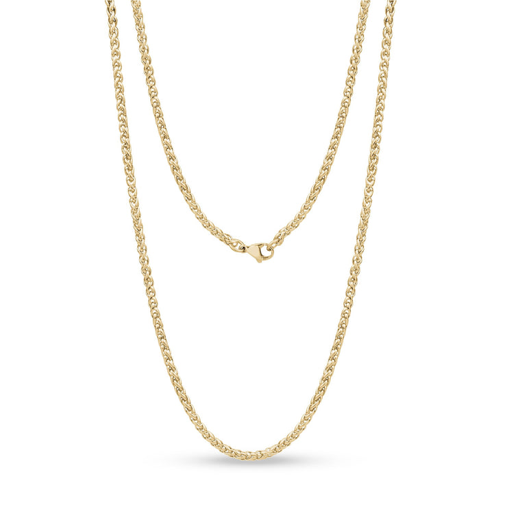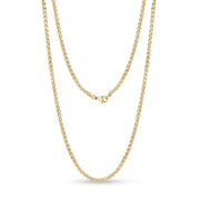 Embrace classic style with this unisex wheat chain necklace in stainless steel. The wheat chain is a distinctive choice. The links appear intricately bound together even though the overall profile of the chain is streamlined. Because the unisex chain is made from stainless steel, it will hold up well during daily wear. You can enjoy this piece in one of three colors. Go with classic silver. Try a bold gold hue. You can even make a statement with a black chain.