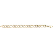 Made out of flawless stainless steel, this figaro link bracelet is the perfect choice. The links provide a streamlined look with masculine overtones. The high-quality stainless steel is made for durability. The links are finished with a lobster clasp to ensure easy wearing. The bracelet can be personalized for your arm. It is available in different sizes to provide just the right fit. Additionally, you can pick between classic silver and gold plating.