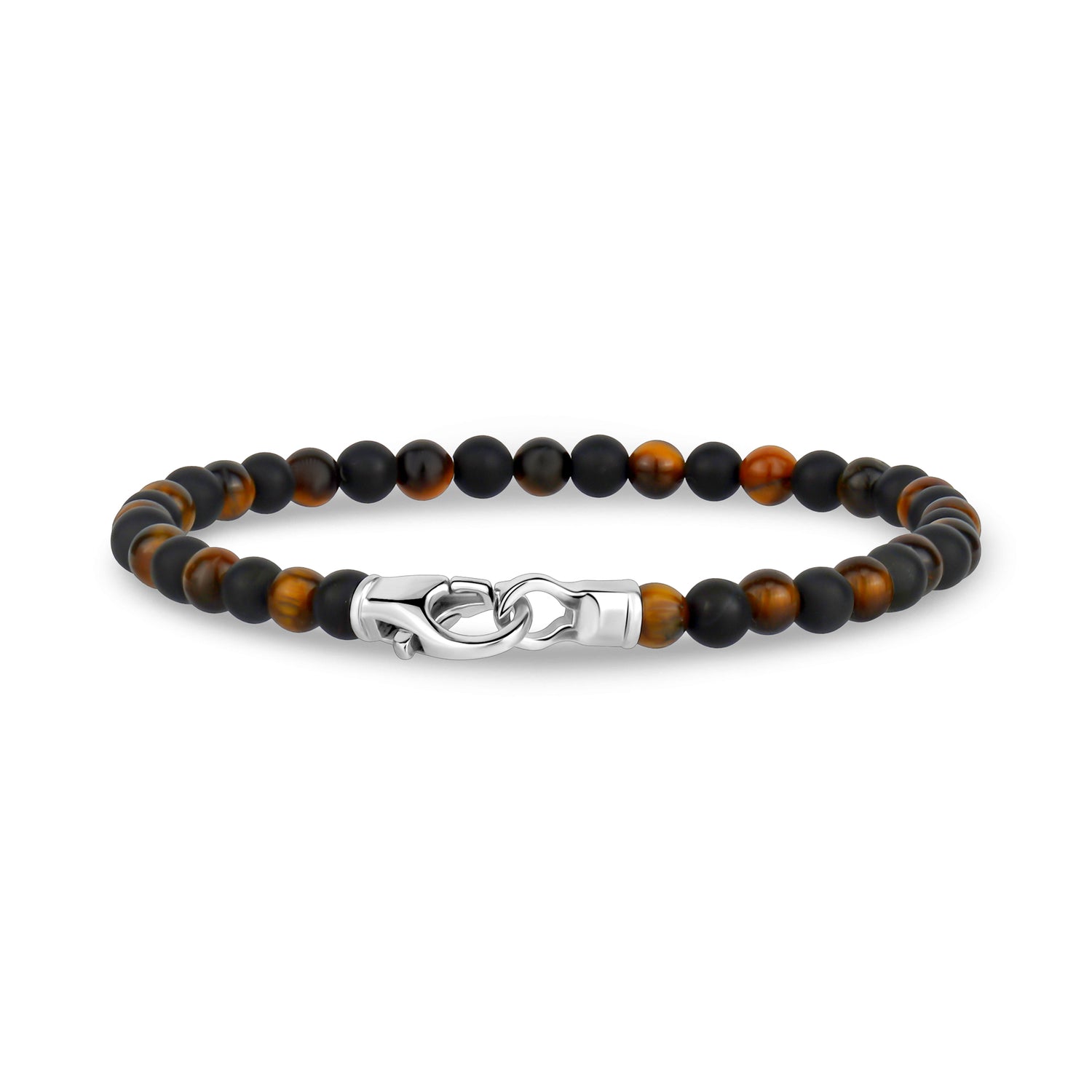 This 4mm steel clasp bead bracelet is an ideal choice for the modern individual who desires an accessory with a touch of edge. Constructed with 4mm (0.16") matte black onyx, brown tiger eye beads and a stainless steel high polished clasp, this bracelet is the ideal addition to any wrist.