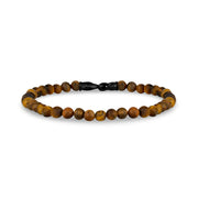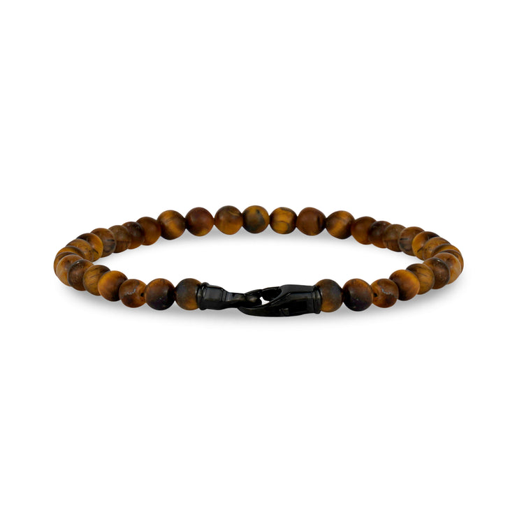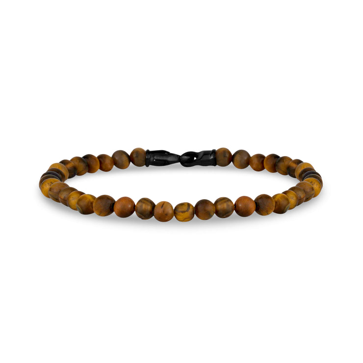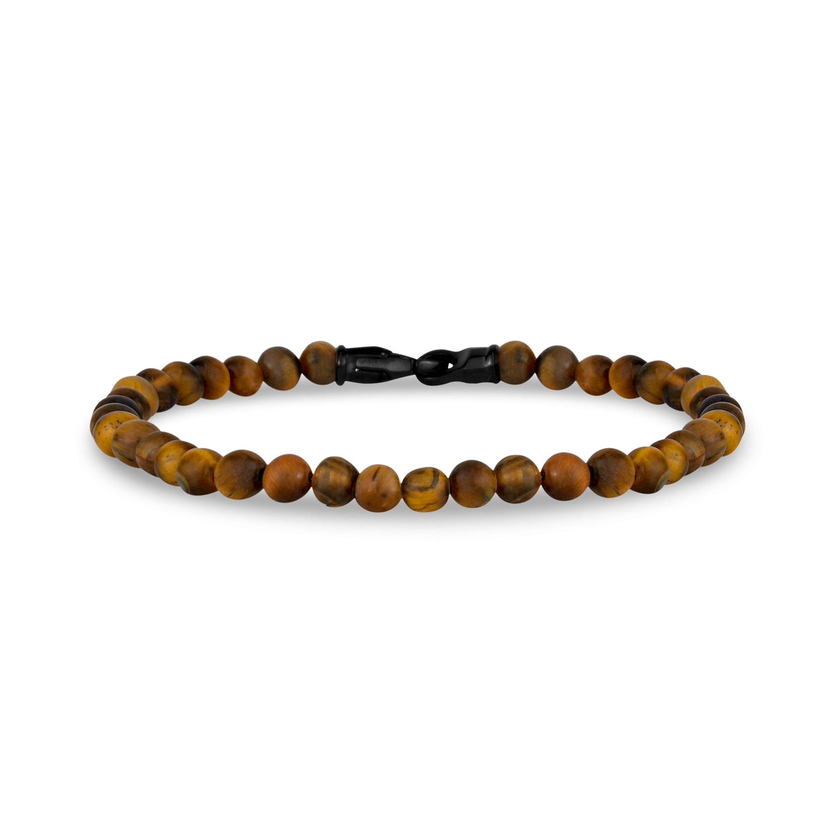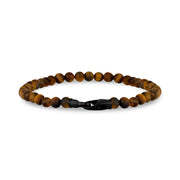 This 4mm steel clasp bead bracelet is an ideal choice for the modern individual who desires an accessory with a touch of edge. Constructed with 4mm (0.16") matte tiger eye beads on a black steel chain and finished with a black stainless steel high polished clasp, this bracelet is the ideal addition to any wrist.