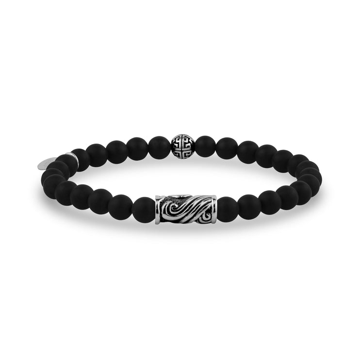 Semi precious 6mm matte black onyx beads with a signature stainless steel designed breeze bead finished on a strong elastic cord. This bead bracelet is great for stacking and gifting.