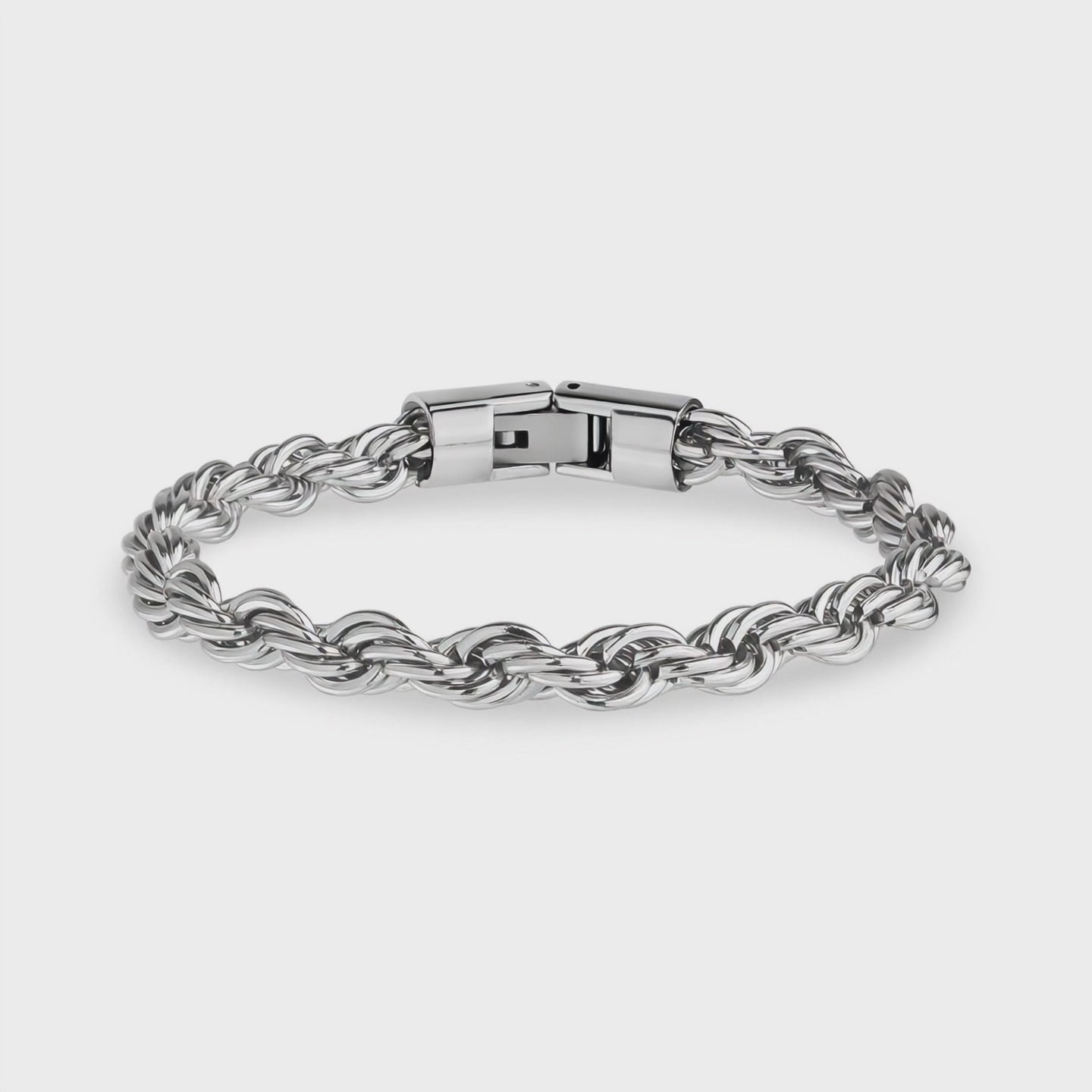 A bold essential for everyday wear, this 6 mm (0.24") men's rope bracelet delivers a strong, timeless look with its tightly woven stainless steel design. Built for durability and completely waterproof, it keeps its shine no matter where your day takes you. The weight and profile make it perfect on its own or stacked with other bracelets for a more elevated wrist game. Finished with a secure clasp, this piece is a must have for any men's collection.
