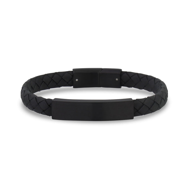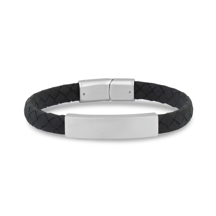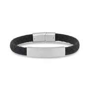 With this matte leather personalized mens bracelet, it's possible to make a statement without going over the top. This bracelet has a sleek profile, which allows it to rest easily on the wrist and not get in the way during daily activities. The best part of this mens bracelet is probably the personalized element. This bracelet can be engraved with a unique message. Engrave yours to make it truly one of a kind.