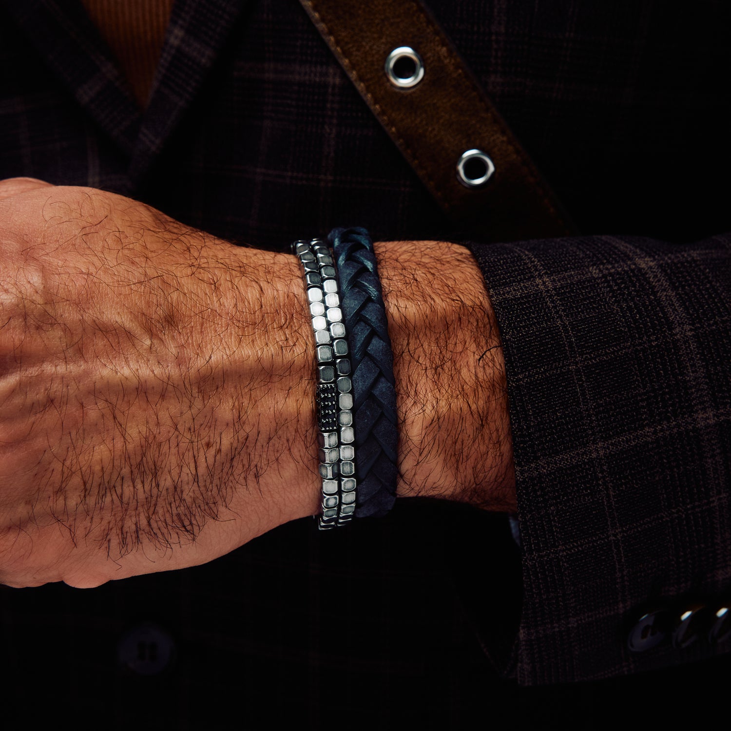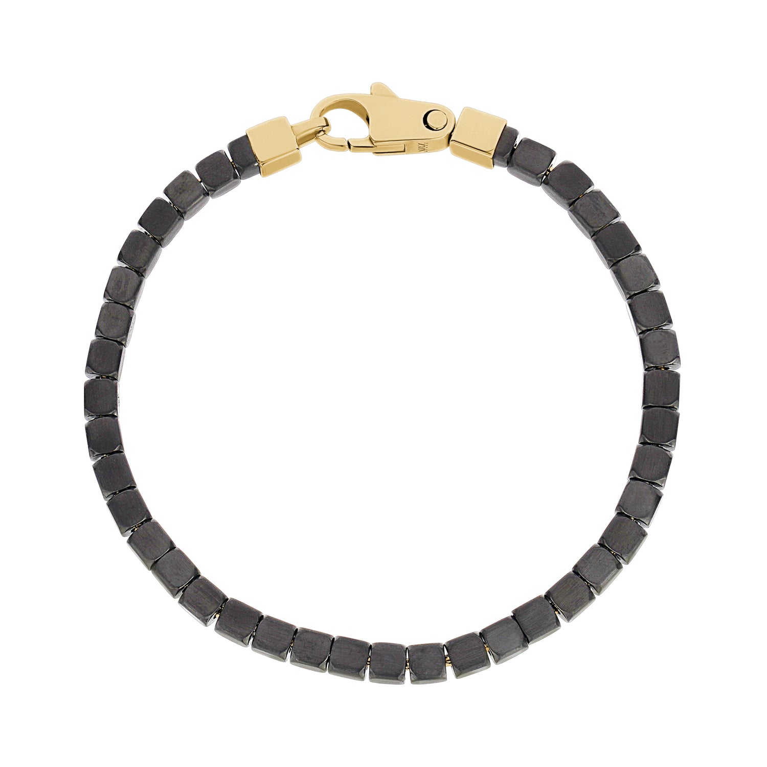Crafted with 4mm (0.16") square steel beads, the Antiqued Square Link Bracelet offers a rugged yet refined look. The distressed finish adds character, while the custom-designed clasp ensures a secure and stylish fit. Perfect for daily wear or as a standout piece, this bracelet is a modern classic with an industrial edge.