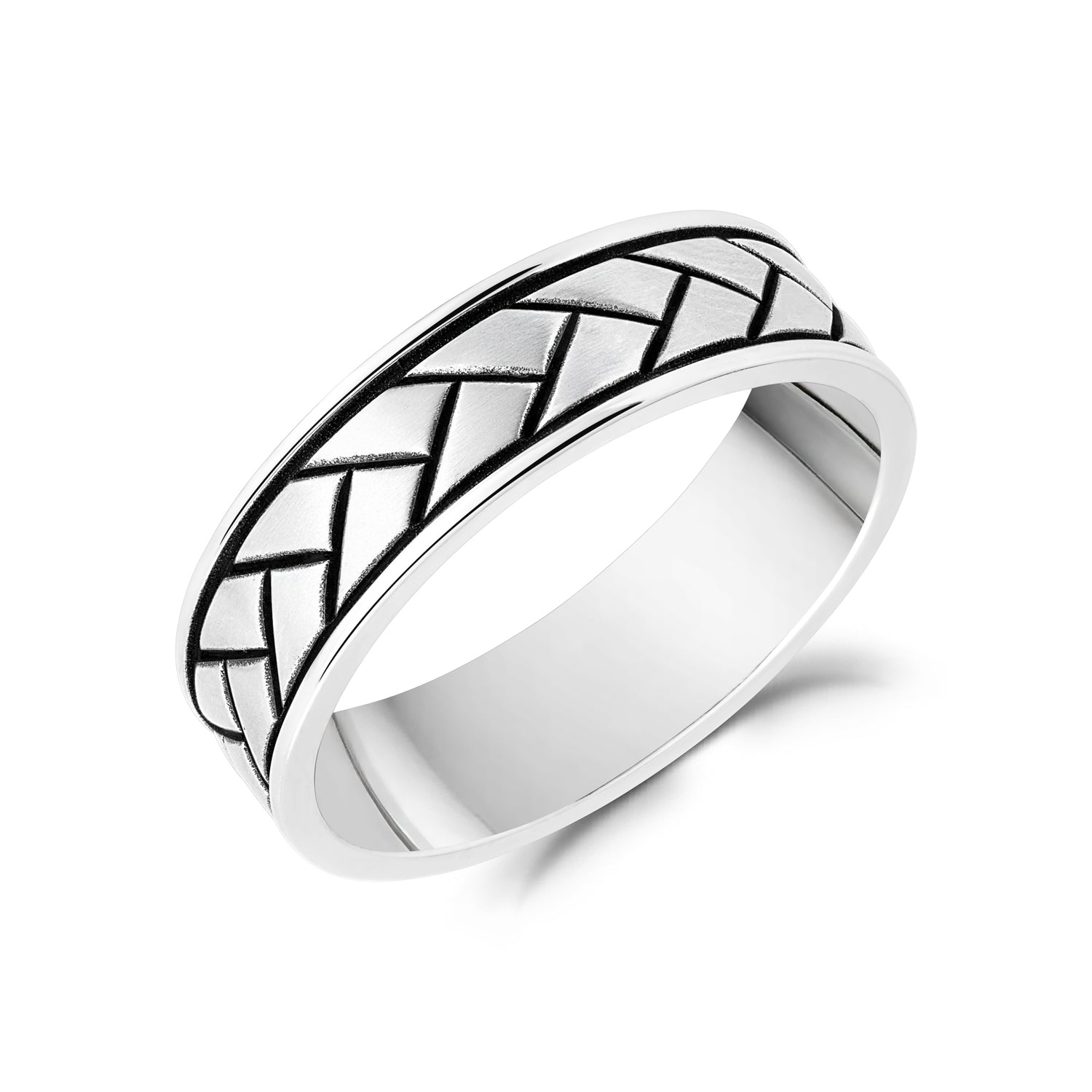 The Geometric Harmony Band stands out with its unique blend of texture and pattern. This ring measures 6.5mm (0.26") in width and features polished shiny edges that beautifully frame a contrasting matte center, adorned with an intricate geometric pattern. Combining classic elegance with modern artistry, this band is perfect for those who value detail and contemporary style. Engravable on the inside, it allows for a personalized touch, making it an exceptional choice for everyday wear or as a memorable gift. This band truly embodies sophistication and individual expression.