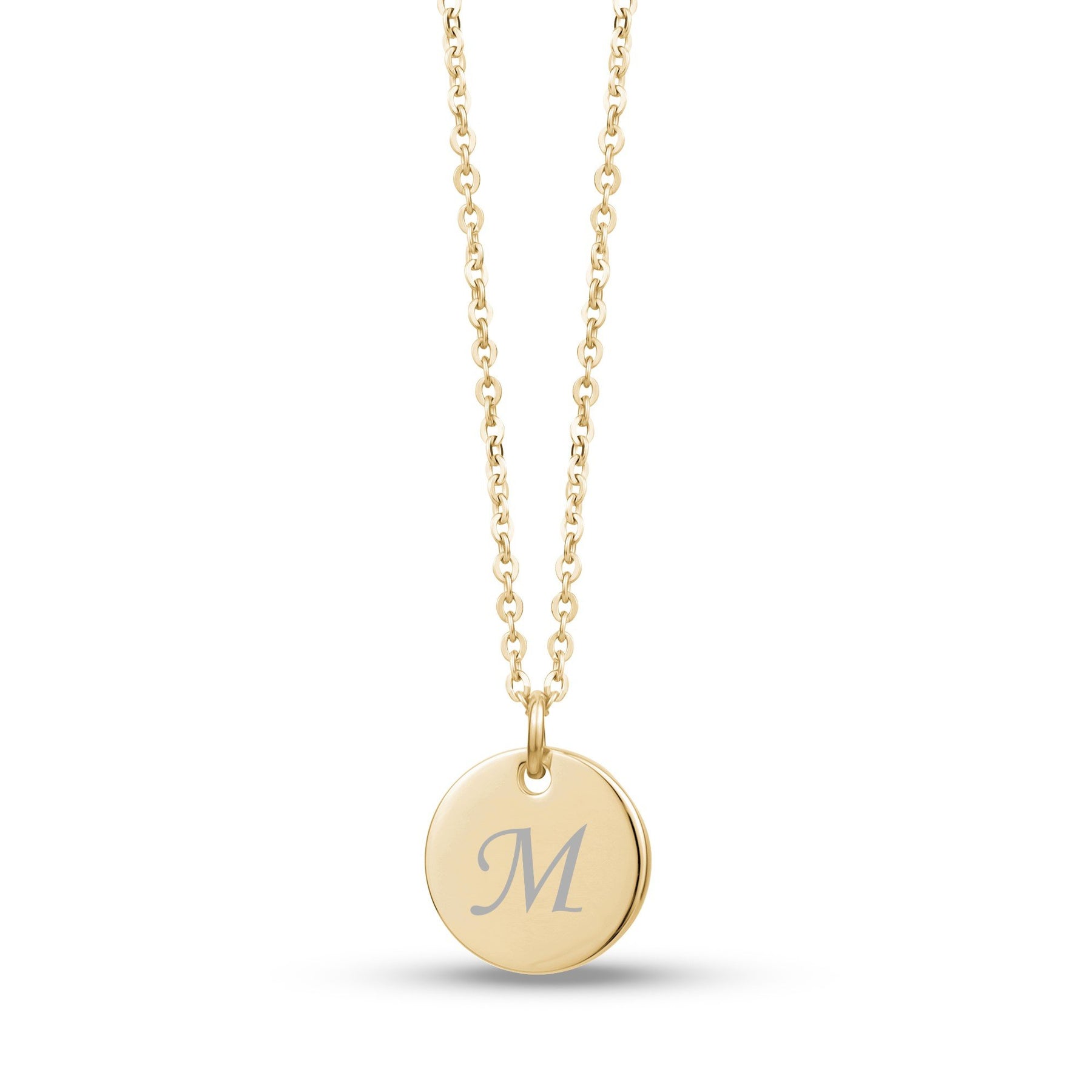 This necklace can be a true statement piece. The stainless steel chain has an understated look, but that is an intentional design choice. The streamlined chain allows the pendant to shine. This is not an ordinary pendant. As an initials pendant, the surface can be fully personalized for you or someone you love. Because this initials pendant is made out of stainless steel, you can take comfort in knowing that it will wear well over time. The chain and disc can be ordered in gold and silver finishes. Be sure to denote what initials you want for your personalized piece.