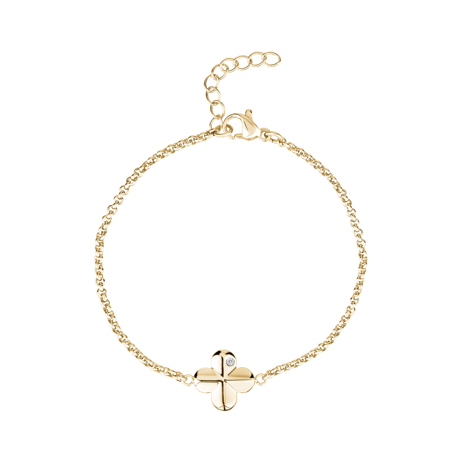 Discover the charm of our Four-Leaf Clover Bracelet, a symbol of good luck and stylish simplicity. This dainty piece features a 12mm (0.47") wide clover charm, meticulously crafted to offer a touch of sophistication to any outfit. The bracelet measures 6.5" in length with an additional 1" extension for adjustable comfort and a perfect fit. Each link is finely made, 2mm (0.08") wide, adding delicate detail to the lightweight design. Ideal for everyday wear or as a thoughtful gift, the clover is also engravable on the back, allowing for a personalized touch. Embrace this timeless piece, designed to bring a little luck and a lot of style to your daily ensemble.