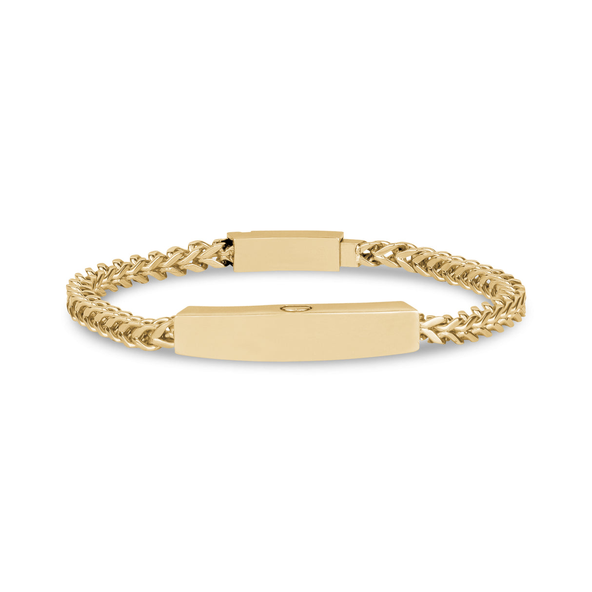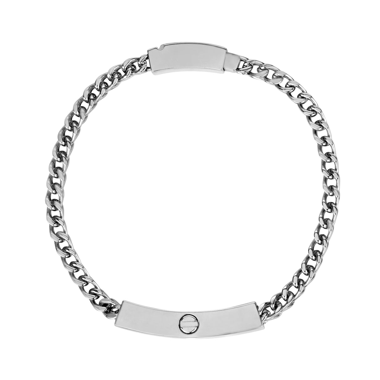 The Franco link ID urn bracelet is made with strong stainless steel and features a 4mm (0.16") link. The engravable ID provides a discreet and modern way to store a small amount of ashes, giving you a lasting way to remember your loved one. The secure screw and waterproof design offer peace of mind when wearing your memorial jewelry. With an ID size of 35mm (1.38") x 8mm (0.31") and a shiny finish, this genderless bracelet will make a beautiful tribute while staying close to your heart.