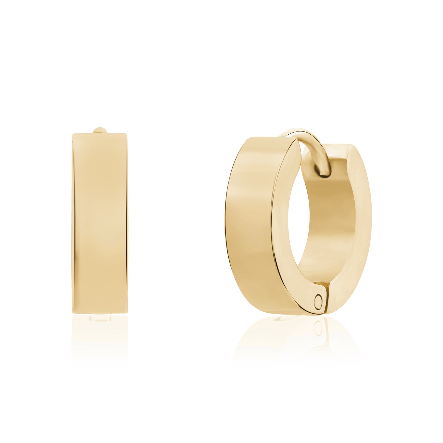 These flat stainless steel huggie earrings are a modern essential, combining simplicity with versatility. Measuring 4mm wide and 13mm in outer diameter, they are lightweight and comfortable for daily wear. Designed for everyone, these unisex earrings are a perfect go-to accessory for a clean, polished look.
