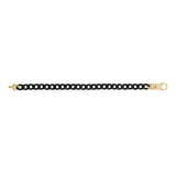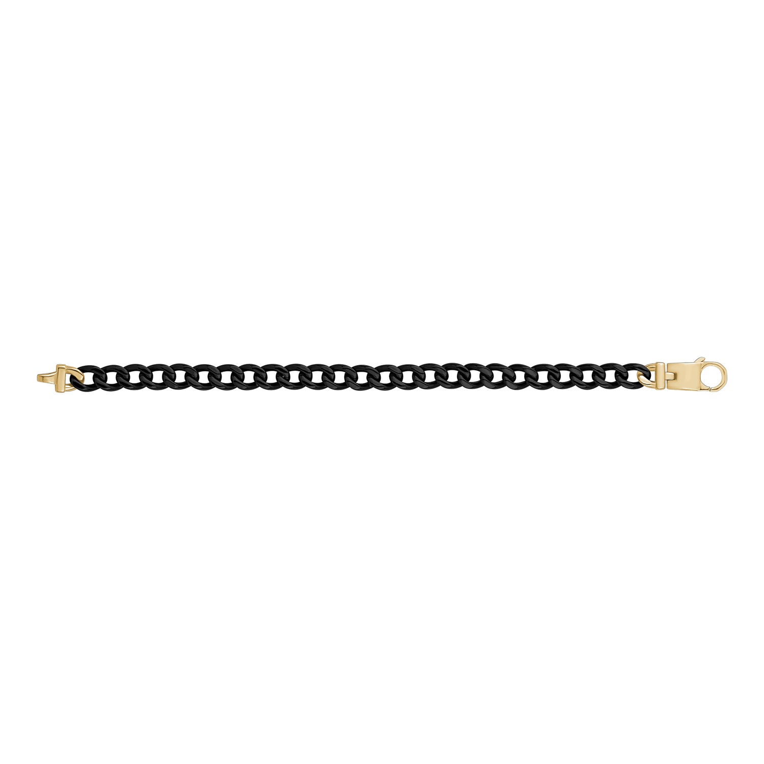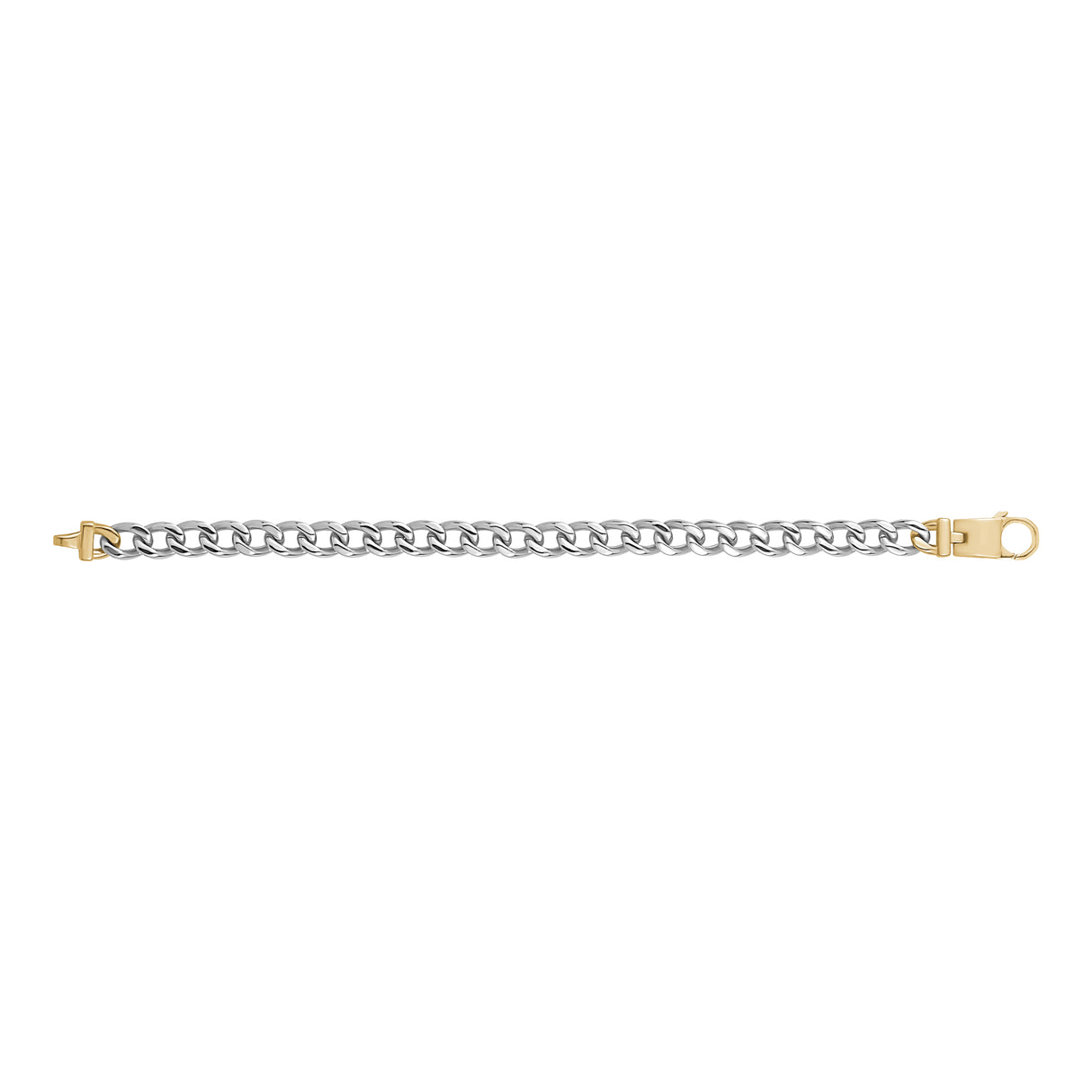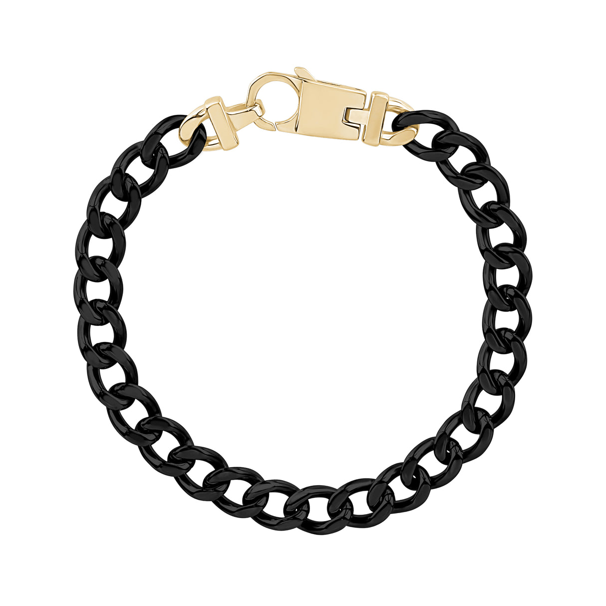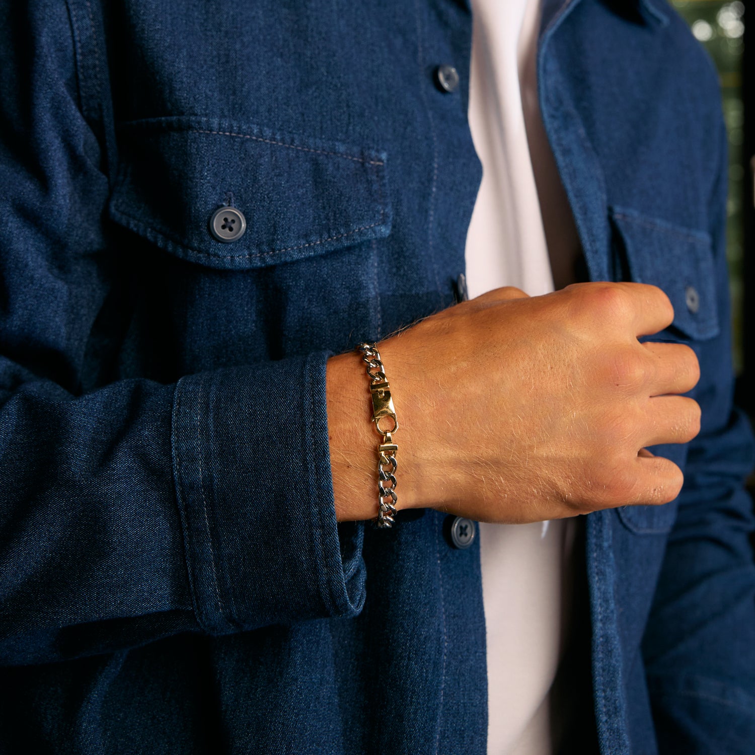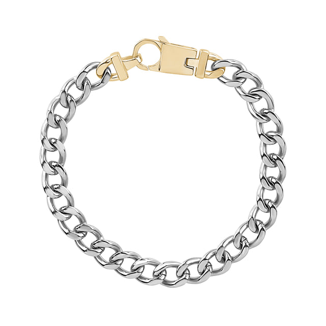 Expertly crafted from shiny gold stainless steel, this custom clasp Cuban link bracelet boasts a sleek 7mm (0.28") design that is sure to impress. Available in silver and black.