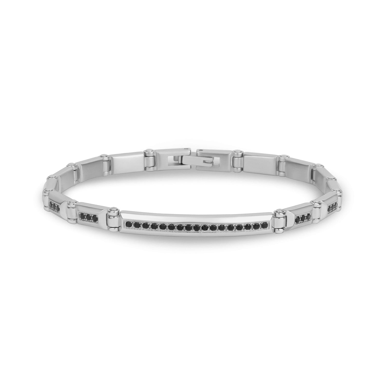 Elevate your style with the Iced Out Black Stone ID Link Bracelet, a luxurious statement piece. Crafted from premium stainless steel, this bracelet is fully set with black cubic zirconia stones, including the ID plate, offering a striking and sophisticated look. With its unique link design and 5mm width, it's perfect for layering or wearing solo. Personalize it to make it uniquely yours.