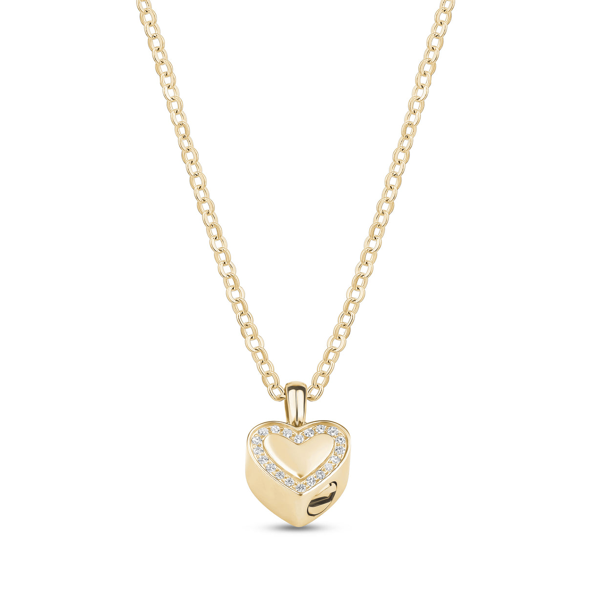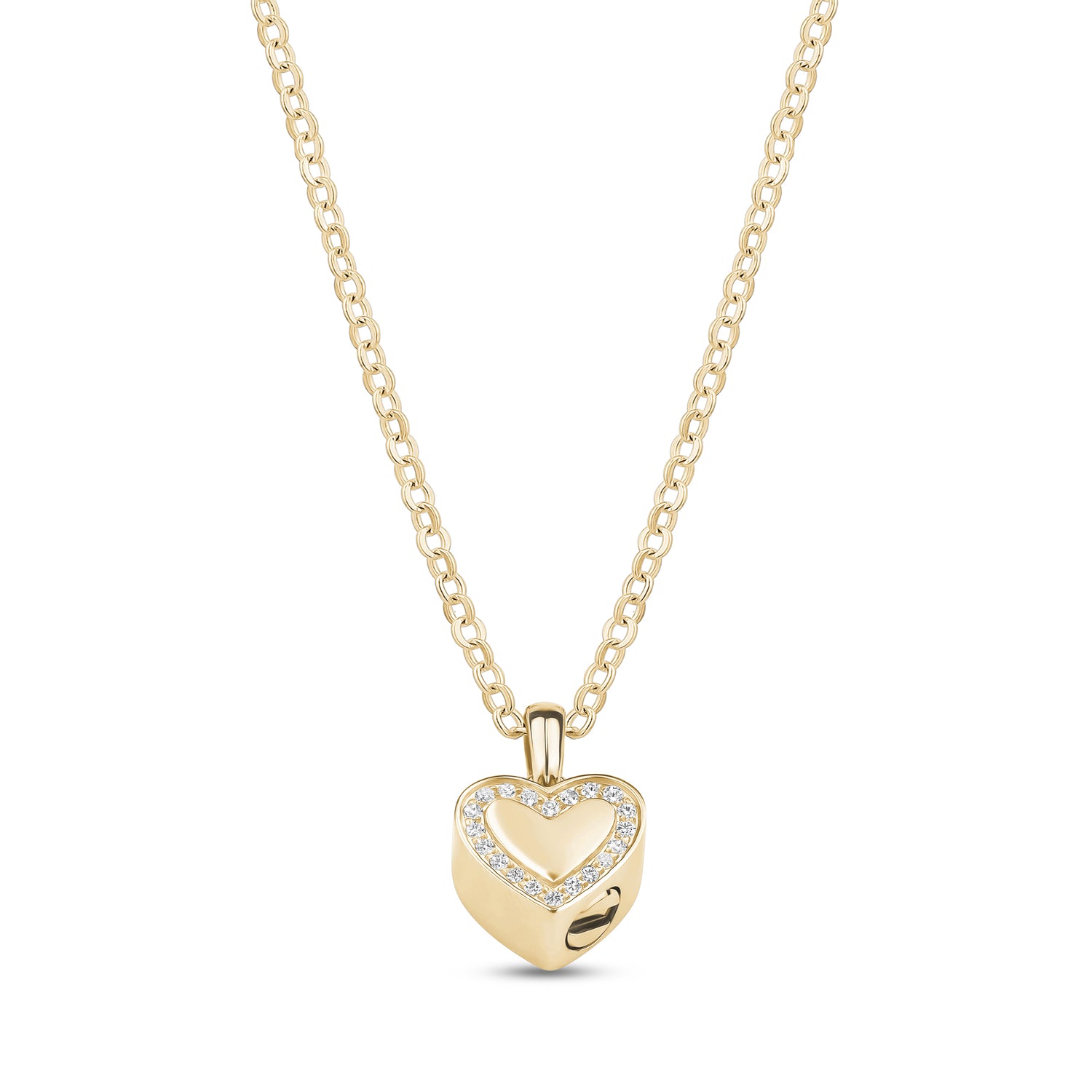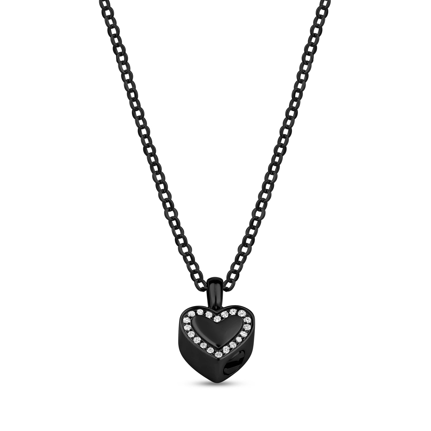 The Loved Forever Heart Urn Pendant offers a touching way to keep your cherished memories close to your heart. This elegantly designed urn pendant is perfect for holding ashes, symbolizing an everlasting bond with a loved one. It features a secure screw closure to keep the contents safe and is waterproof, ensuring lasting preservation. Adorned with stone-set cubic zirconia all around, it adds a sparkling tribute to its meaningful design. The pendant is engravable on the backside, allowing for a personalized touch of remembrance. Measuring 10mm (0.39") in width and suspended on a slender 2mm chain, this pendant can be worn at lengths of either 17" or 18", beautifully combining functionality with graceful styling, making it a deeply significant addition to any jewelry collection.