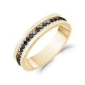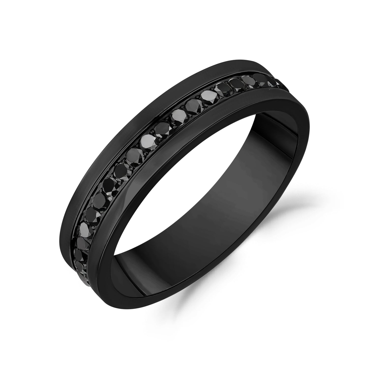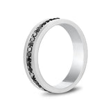Introducing the Modern Noir Gemstone Band, a sleek 5mm (0.2") ring that embodies sophistication with its polished finish and a striking set of black cubic zirconia stones. The continuous line of gemstones offers a subtle yet captivating sparkle, perfect for those who prefer a touch of elegance and modernity in their jewelry. This ring is versatile enough to serve as a unique wedding band or as a stylish accessory for any occasion. Additionally, it is engravable on the inside, allowing for a personal message or date to make this piece truly special.