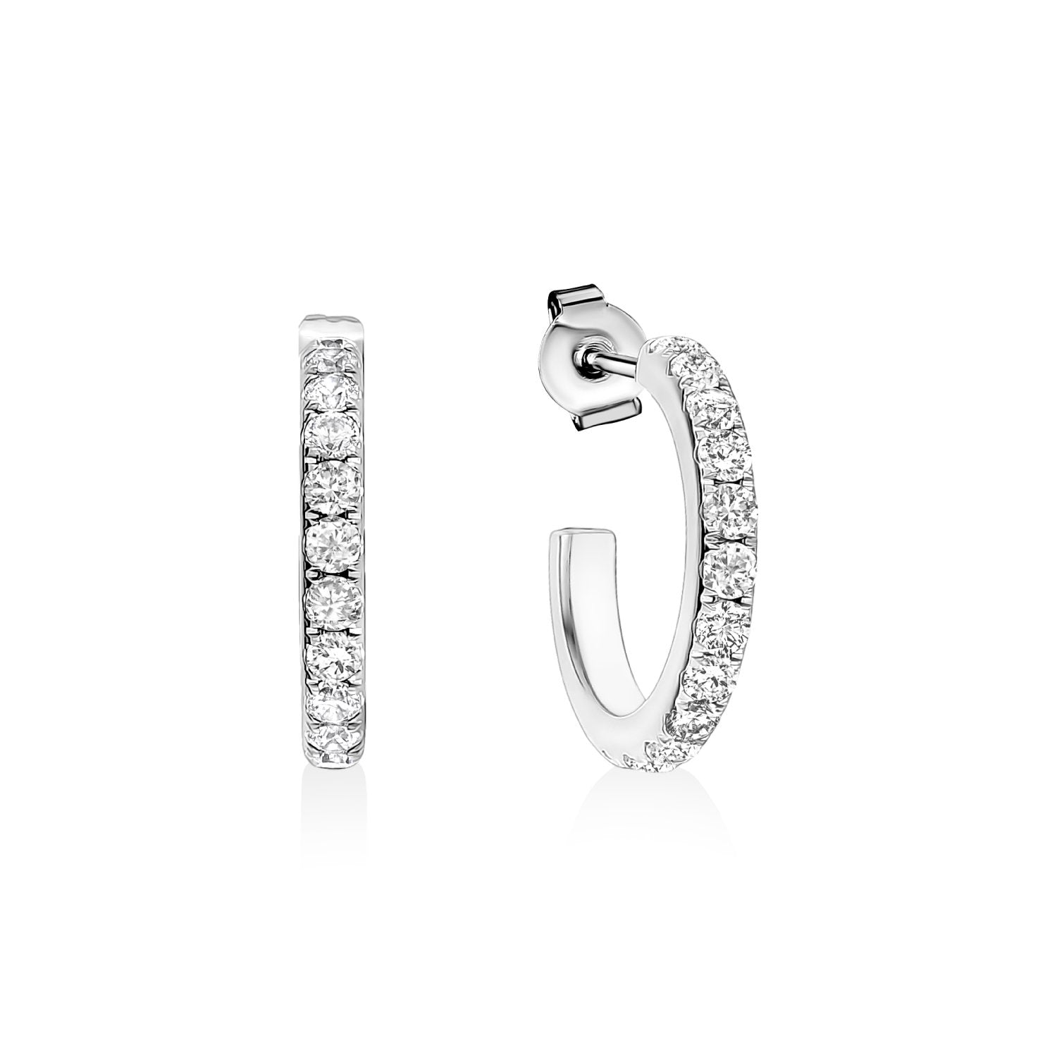 Simple yet elegant stainless steel hoop earrings with high quality cubic zirconia stones. Each stone is set on the earrings to make it look like real diamonds.