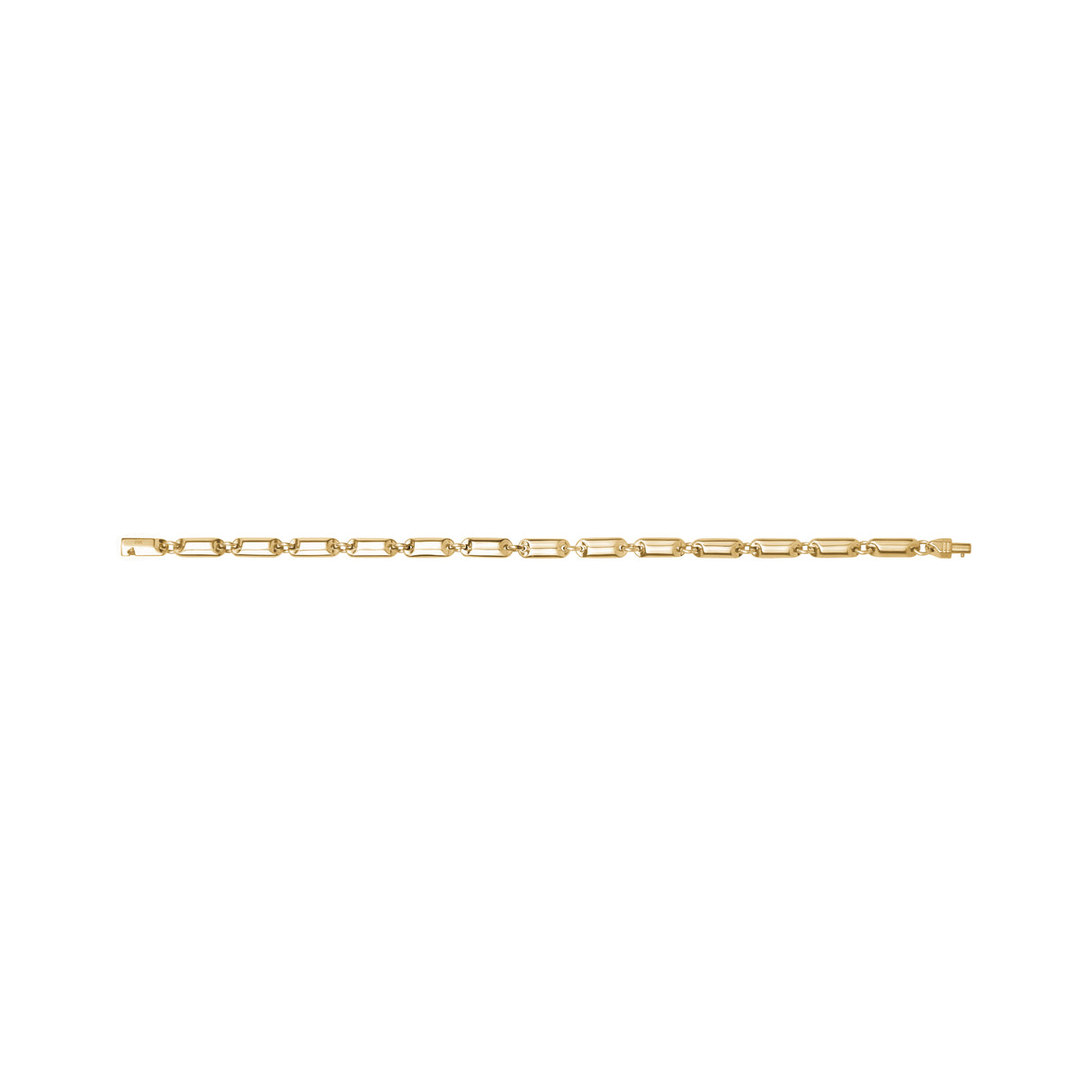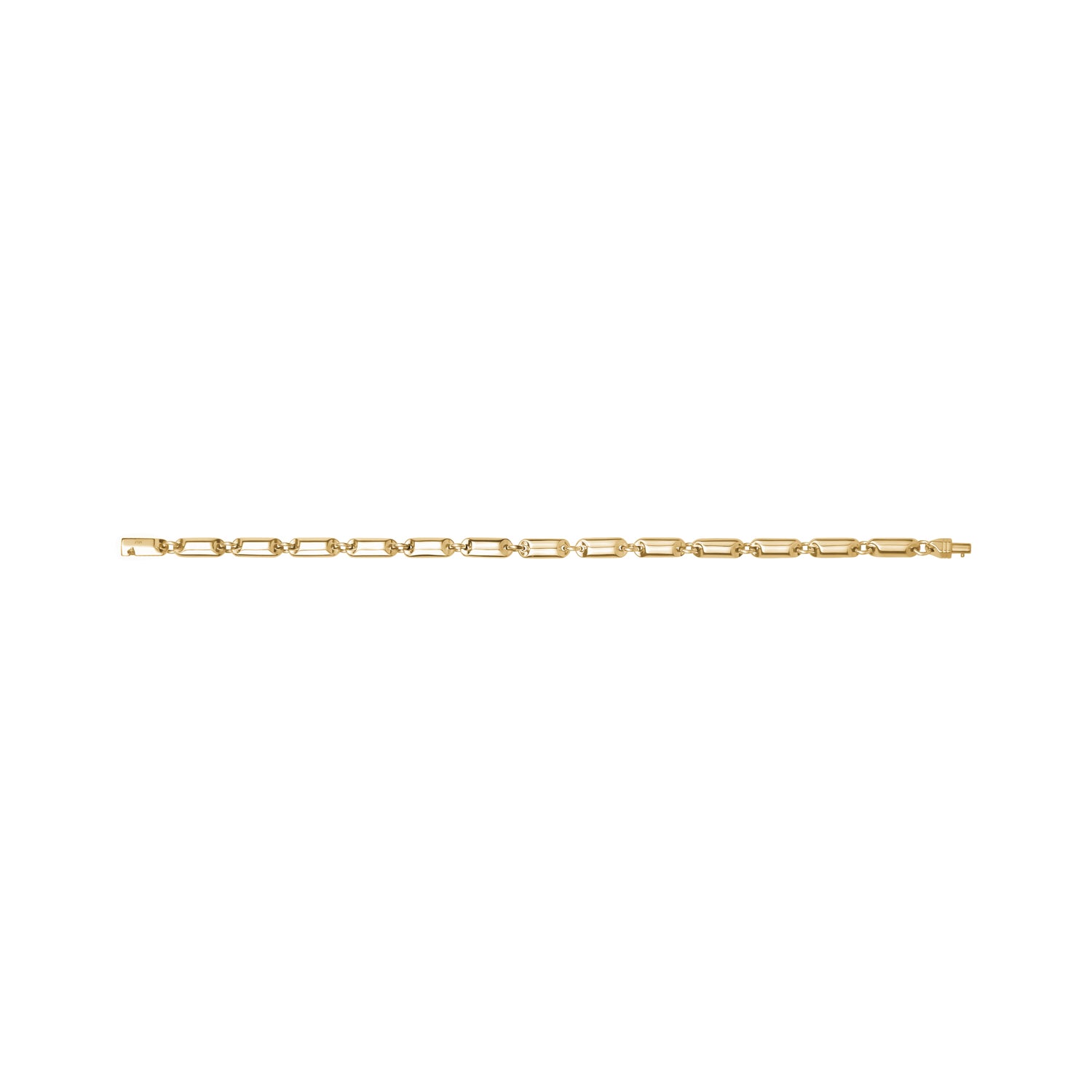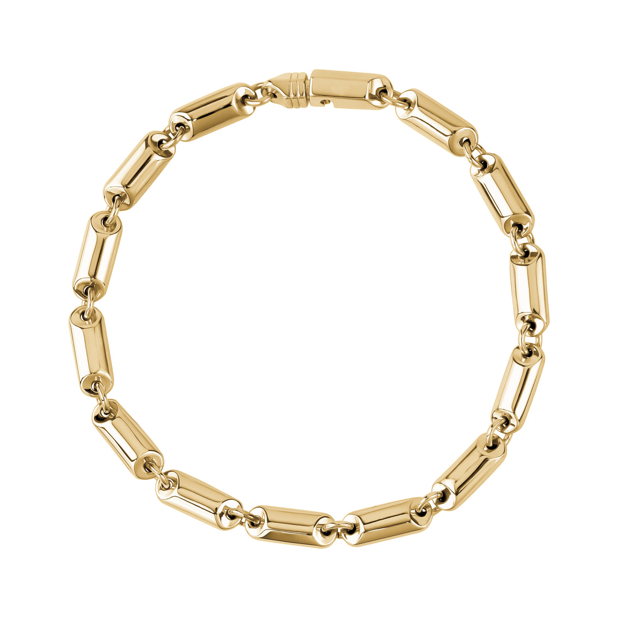 This solid link bracelet features full steel links 13mm x 5mm to create a modern yet timeless design. Perfect for stacking with other bracelets or wearing alone, its heavy weight ensures it stays securely in place. With simple yet sophisticated details, this bracelet will elevate any look.