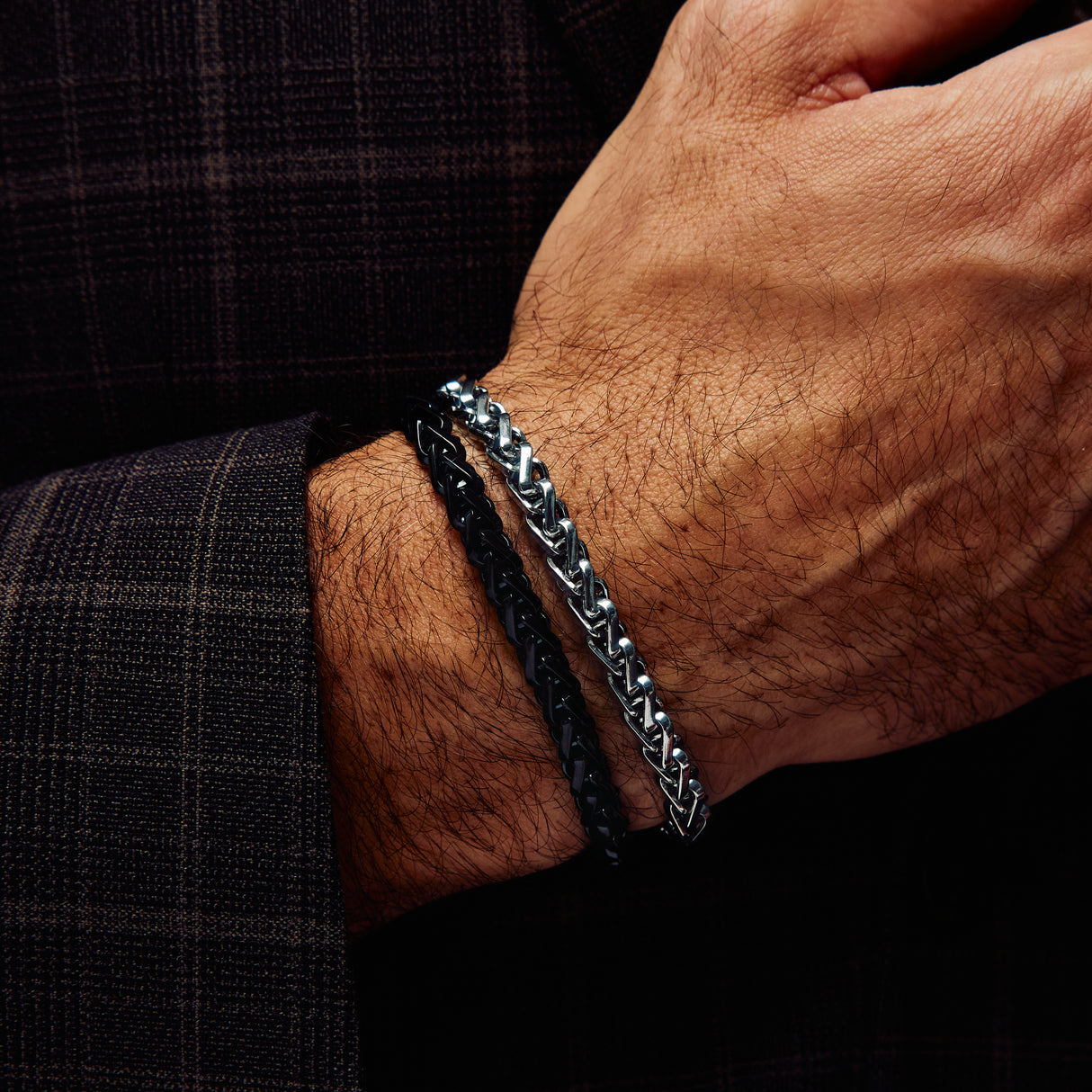 This 6mm (0.24") Square Wheat Chain Bracelet made of stainless steel is perfect for stacking and makes a great gift for men. The bracelet features a modern design and is secured with a lobster clasp closure.