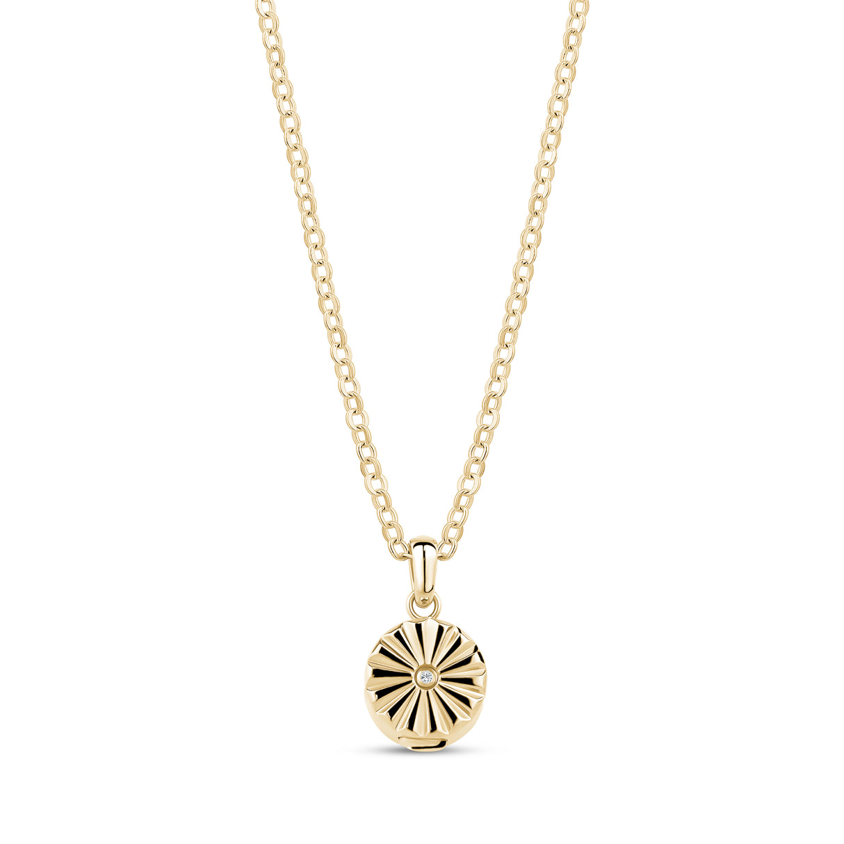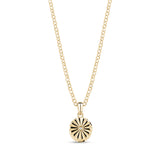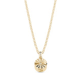 This elegant Starburst Urn Pendant combines timeless design with personal remembrance. Centered with a sparkling cubic zirconia, this pendant serves as a delicate cremation urn, offering a small, secure compartment for ashes, ensuring that memories are held close to your heart. Crafted to be waterproof with a secure screw closure, it measures 10mm (0.39") in width and 5.5mm (0.22") in thickness, making it both subtle and impactful. The back of the pendant is engravable, allowing for a personalized touch. Accompanied by a versatile 2mm chain, it can be adjusted for a 17" or 18" length, perfect for everyday wear or special occasions.