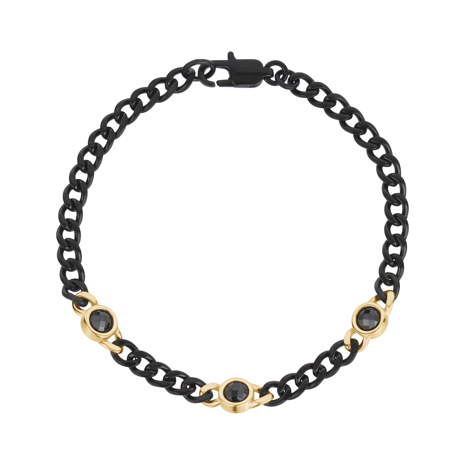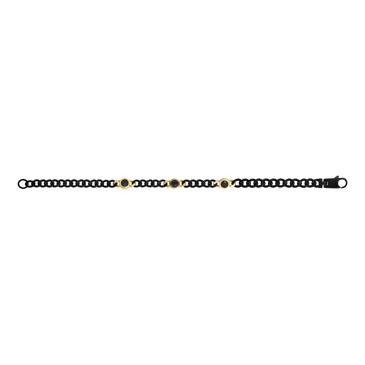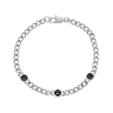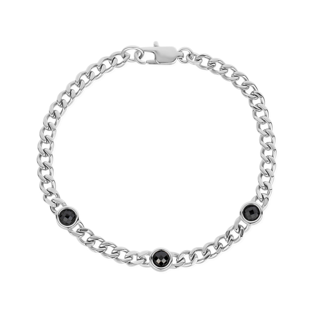 Add a sleek edge to your look with this 4mm Cuban link bracelet, featuring three black stones set in polished stainless steel. Durable and stylish, it's perfect for any occasion, blending modern minimalism with a bold touch.