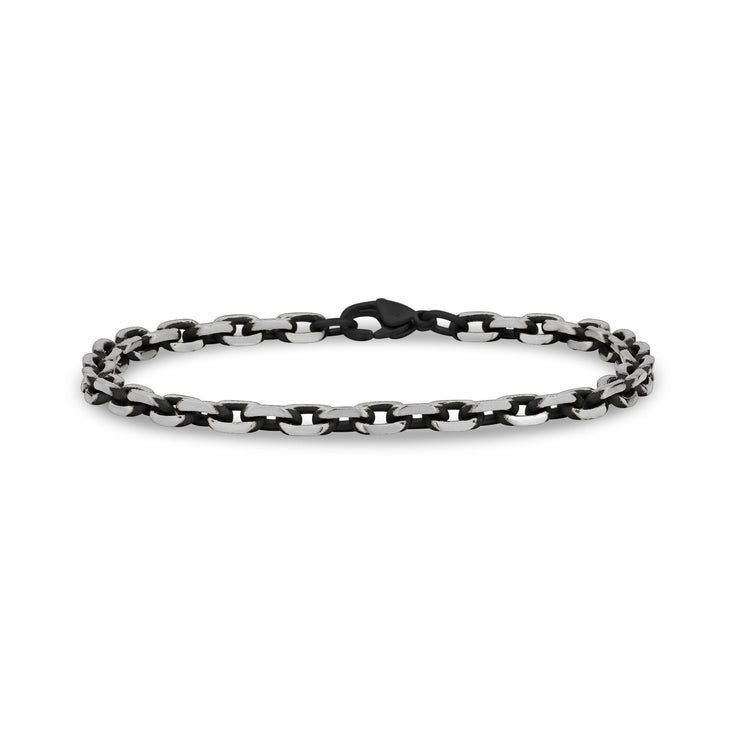 This classic two tone anchor link bracelet is the perfect accessory for any occasion. It's made of stainless steel with a matte finish and is 5mm wide. With its two different tones, it looks great when stacked with other bracelets. Sleek and sophisticated, it's sure to become a jewelry box staple.