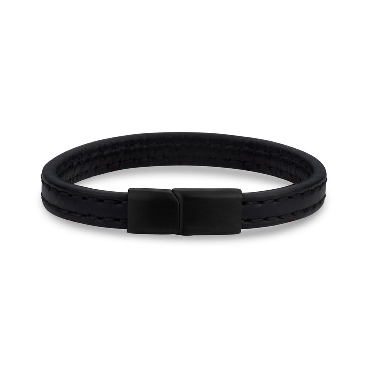 This Vintage Leather Bracelet is crafted from high quality Italian leather for durability and comfort. The 8mm (0.31") wide, 4mm (0.16") thick leather with stitching adds to its classic look, while the matte black steel clasp ensures a secure fit. Quality leather provides strength and longevity to the bracelet making it a timeless piece you'll enjoy for years.